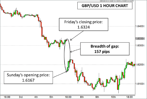 Many market participants are knowledgeable of the fact that most popular markets close their doors on Friday afternoon Eastern Time in the US. Investors pack up their things for the weekend, and charts around the world freeze as if prices remain at that level until the next time they are able to be traded. However, that frozen position is a fallacy; it isn’t real. Prices are still moving to and fro based on the happenings of that particular weekend, and can move drastically from where they were on Friday until the time they are visible again after the weekend.